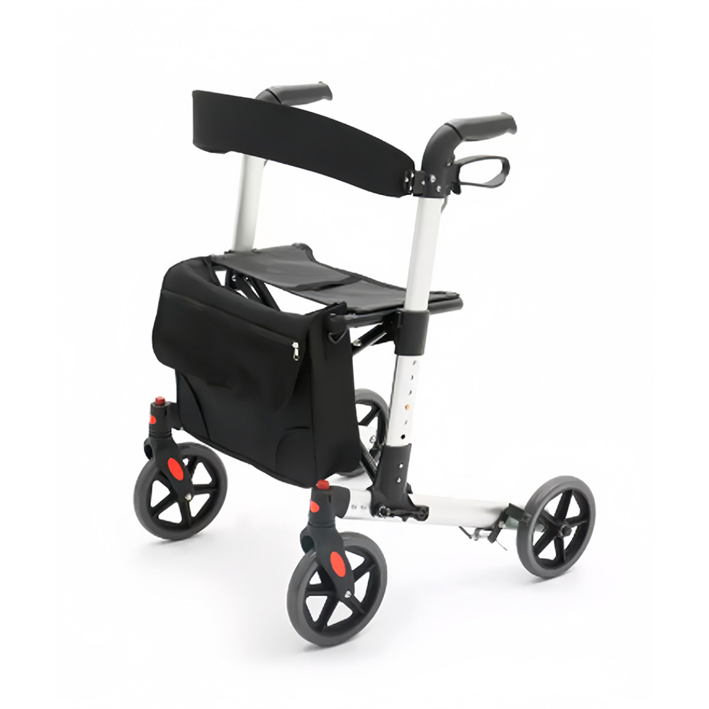 Ролатор легко складається для зберігання або транспортування, а м’які поліуретанові колеса обертаються на 360° і забезпечують високу маневреність. Передні колеса знімні для полегшення регулярного обслуговування.